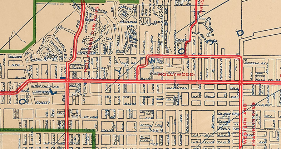 As Whitlock’s map shows, the names Sunset Boulevard and Hollywood have always been intertwined.