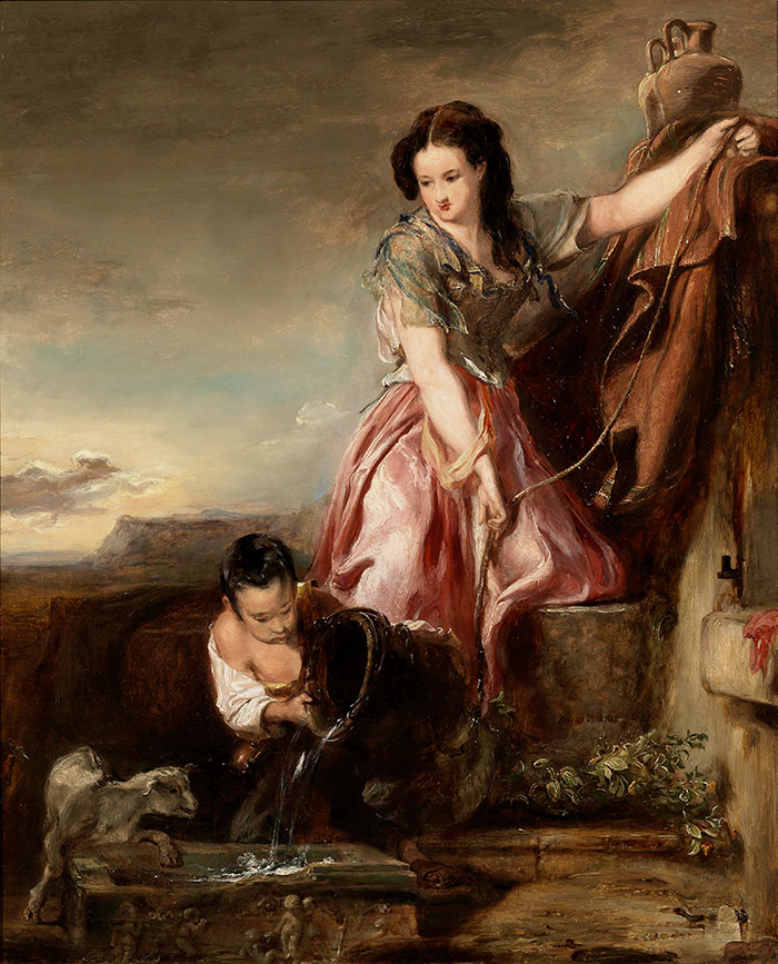 Wilkie began the painting in Jerusalem while on an extended trip to the Near East in 1840-41. His travels were part of a campaign that he hoped would lead to a revolution in religious painting, one in which first-hand observation of the landscapes, architecture, and people of the Holy Land would be used to create historically accurate biblical scenes. (The Huntington already had one of Wilkie’s on-the-spot drawings, Interior in Jerusalem.) The painting, and indeed the artist’s whole project, was never completed. He died onboard ship as he traveled back to London.