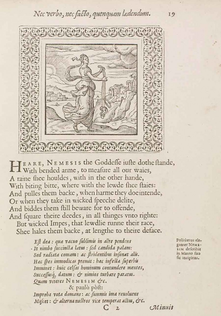 George Whitney, A choice of emblemes, and other devises, 1568. Bookplate of Robert Hoe. The Huntington Library, Art Museum, and Botanical Gardens.